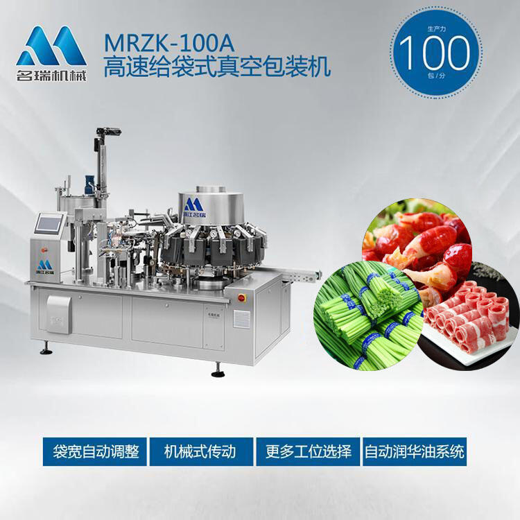 名瑞机械给袋式自动包装机应用广泛,可用于纸塑复合、塑塑复合、铝塑复合、PE复合等包装材料;根据不同的物料和不同的计量装置,可以实现颗粒、粉末、块状、液体、软罐头、玩具、五金等产品的自动给袋式真空包装。