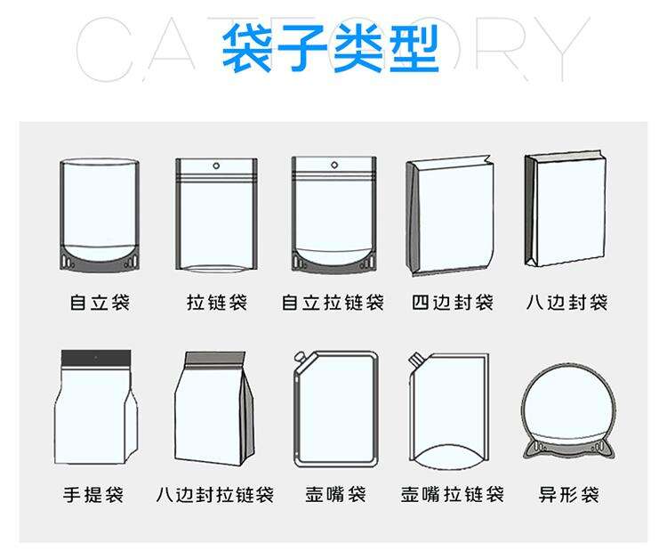 自立式:尖顶角形袋、椭圆柱形袋、底撑柱形袋、塔形袋、立方柱形袋、异形袋