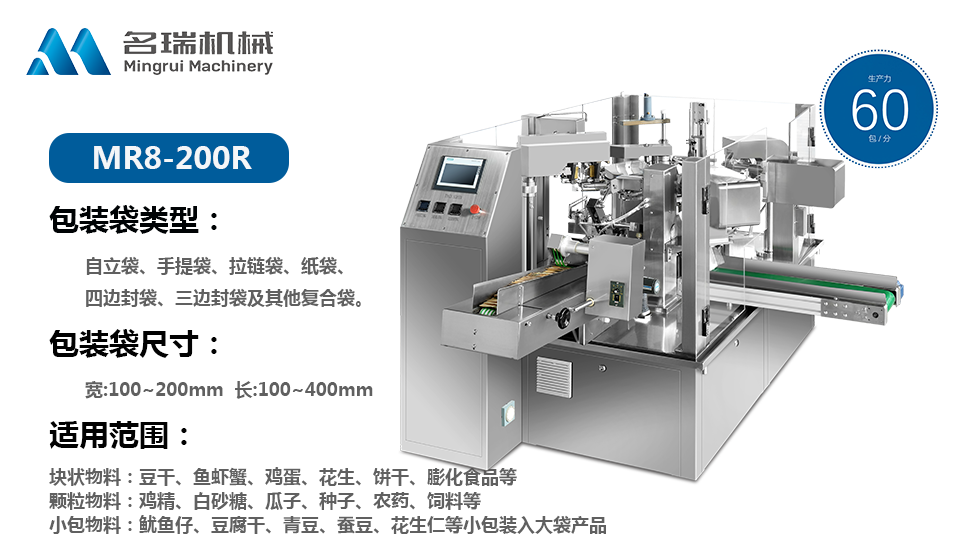 四川给袋式包装机作为一种能够应用在各行各业的高科技设备,自然而然也是有很多优点的,名瑞机械在这里给各位整理了一篇文章,里面包含了给袋式包装机的优点。