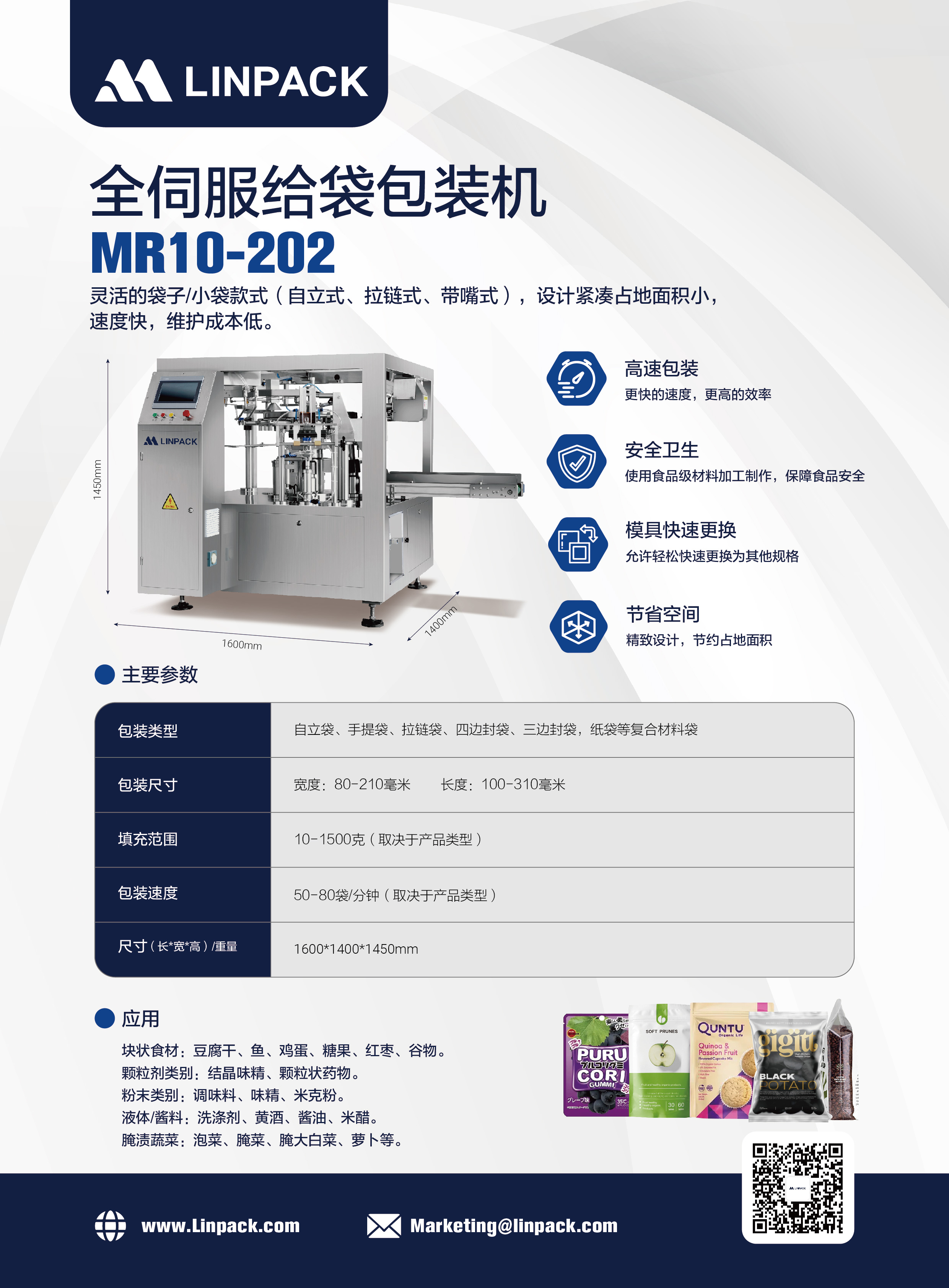 名瑞作为包装机械领域深耕多年的企业,此次参展将携MR10.202全伺服给袋包装机重磅亮相。该设备可广泛应用于食品饮料、医药化工、日用农业等行业,通过实机演示与面对面交流,为客户呈现降本增效的定制化解决方案,助力企业提升生产效率、降低运营成本,实现可持续发展。
