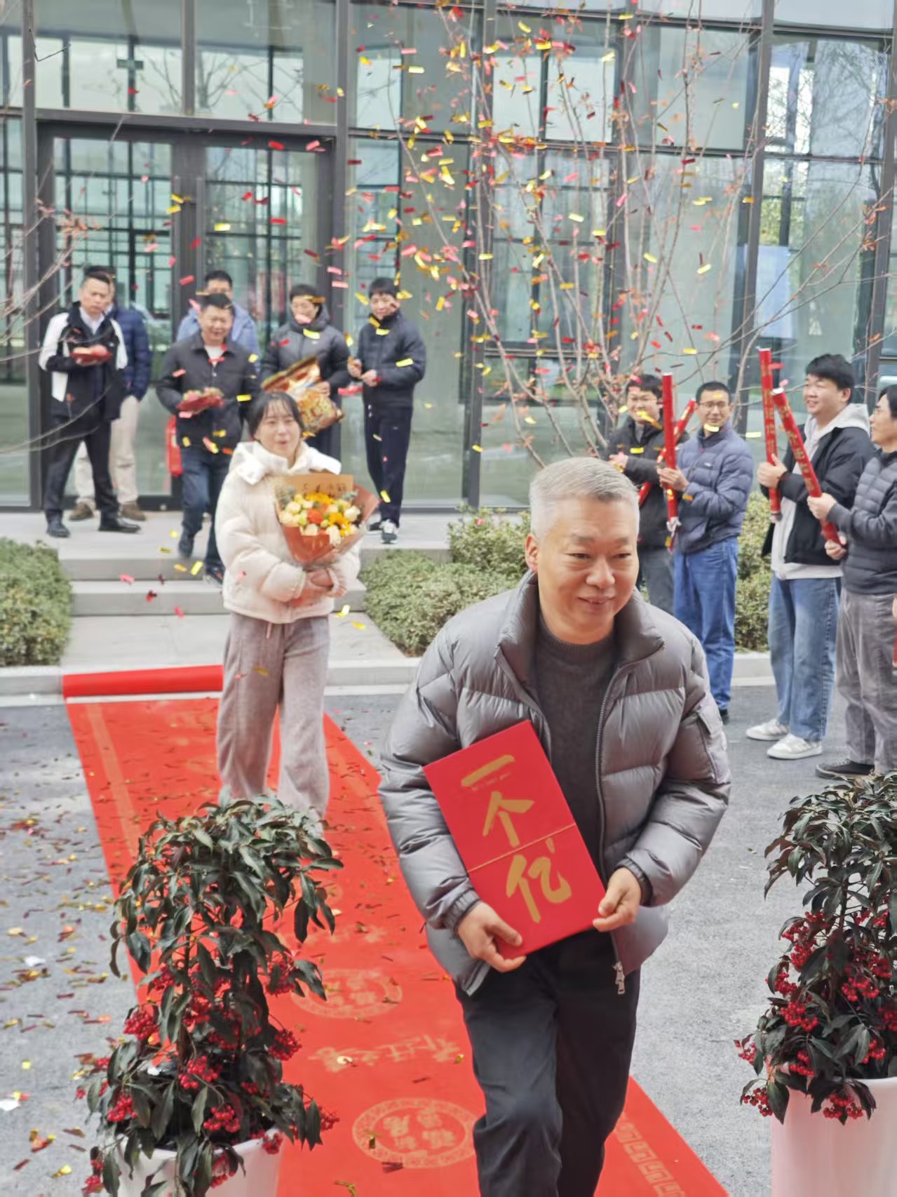在“持物入堂”环节,各位高管手持寓意满满的信物依次入场。这些信物承载着团队对未来的美好期许,也象征着浙江名瑞同心筑梦的坚定信念。
